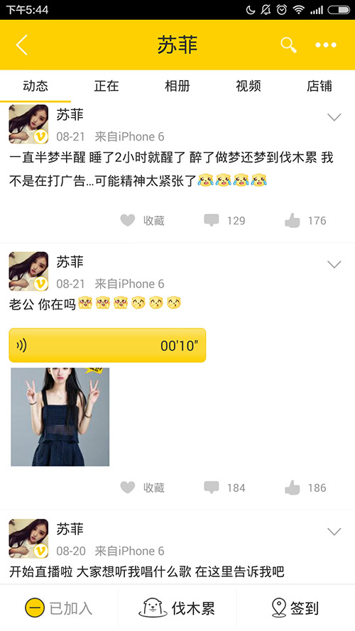 2015年8月20日,斗鱼知名主播小苏菲在伐木累发布第一条语音动态,开启了全新的伐木累粉丝互动之旅。