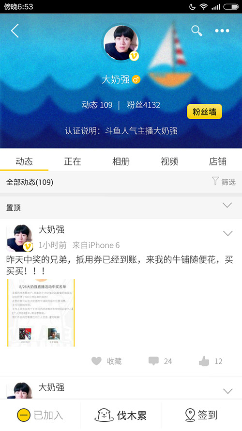 2015年8月26日,天空一声巨响,斗鱼人气爆表实力主播大奶强席卷伐木累,豪爽放出每人五百超级大奖。粉丝纷纷在强哥伐木累动态下抢楼留言,猜人头、夸强哥两不误。