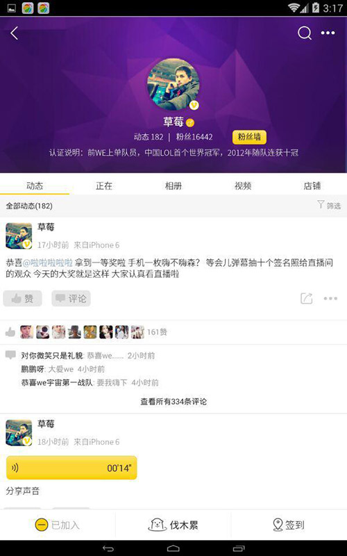 第一萌软件伐木累,第一个粉丝垂直互动社区,这里有前世界第一ADC,有电竞圈毫无争议的第一帅,你还在等什么?快来加入伐木累吧!