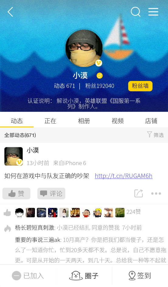 这就是伐木累,一个好玩又有福利的相亲相爱大家庭,不但有国内最顶尖的技术型解说,更有多名高人气娱乐型主播,明星版图不断扩大。小漠的加入,给伐木累带来更多有趣的话题。伐木累的初衷也是给粉丝基础雄厚的平民偶像一个发布独家个人动态和图文语音的平台。